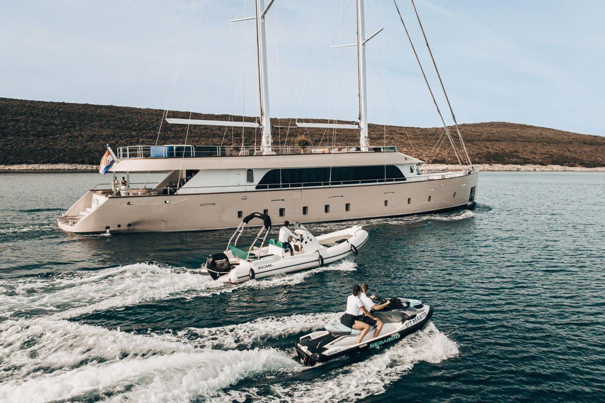 Meet Maxita, the brand-new (2024) motorsailer that redefines elegance on the seas. Accommodating up to 12 guests in six stunning cabins, including a master and VIP. Maxita delivers a perfect blend of modern luxury and warm hospitality, thanks to a dedicated crew of 8. Enjoy a spacious sundeck with a jacuzzi, an open-air cinema, and multiple lounging areas, while indoor comforts include a sophisticated salon, a fully stocked bar, and a gourmet dining space. Thrill-seekers can indulge in an impressive range of water toys, from jet skis and SeaBobs to a waterslide and e-foil board. Complete your Adriatic escape with Mediterranean gastronomy at its finest—fresh seafood, locally sourced produce, and the aromatic essence of regional herbs. Led by the experienced Captain Zorko and his devoted team, Maxita promises an unparalleled voyage into Dalmatian charm and the lap of yachting luxury.